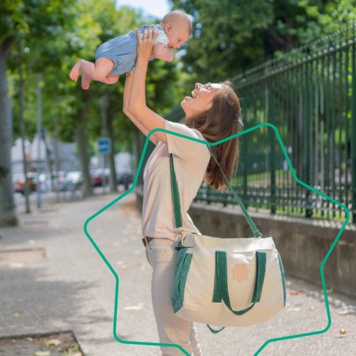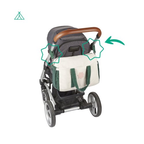• možno nosiť rôznymi spôsobmi: v ruke, na ramene, cez telo alebo na kočíku (dodáva sa vrátane klipov na kočík)