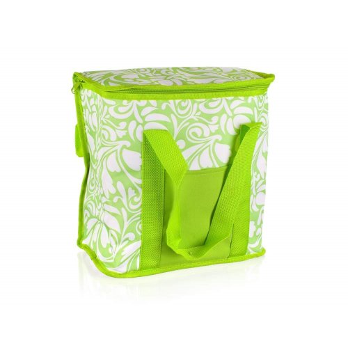 Chladiaca taška veľká 20 l - dekor 1, zelená s bielymi kvetmi. Vonkajší materiál - vysoko odolný polyester, vnútorný materiál - izolačná vrstva PE pena. Vnútorné hladké steny umožňujú veľmi ľahkú údržbu a očistenie v prípade znečistenia potravinami. Vonkajší materiál - vysoko odolný polyester, vnútorný materiál - izolačná vrstva PE pena. Vnútorné hladké steny umožňujú veľmi ľahkú údržbu a očistenie v prípade znečistenia prenášanými potravinami.