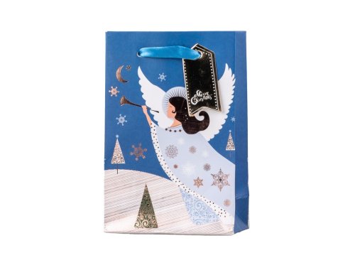 Taška darčeková 100x150 mm anjel, biela, modrá