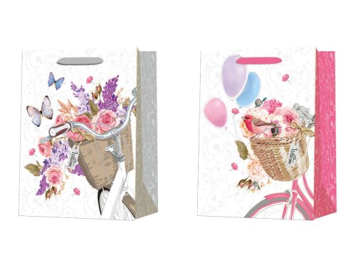 Malá darčeková taška o rozmere 100×150 mm s dekoratívnym motívom koša s kvetinami. Farebné prevedenie je dodávané v mixe, jednotlivé tašky sa môžu líšiť motívom alebo odtieňom.