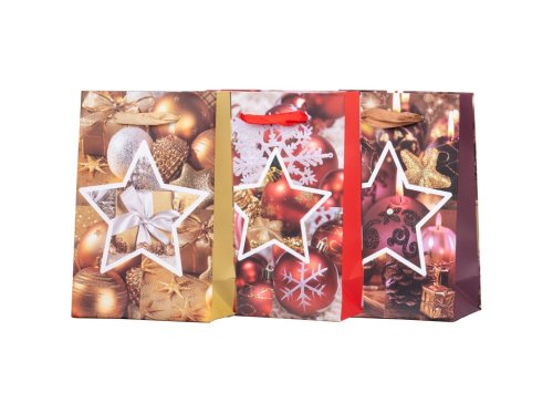 Malá darčeková taška o rozmere 100×150 mm s elegantnými motívmi vianočných ozdôb v mixe zlatej, červenej a fialovej farby. Vyrobená z kvalitného pevného papiera, ideálna pre drobné darčeky, šperky či malé dekorácie. Štýlové vianočné prevedenie dodá každému darčeku sviatočnú atmosféru. Tovar je dodávaný v mixe. Doručovaný tovar je vyberaný náhodne a nie je možné vybrať konkrétne prevedenie.