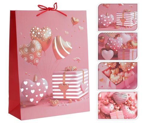 Taška darčeková 23 x 18 x 10 cm, SRDCE, mix dekorov.