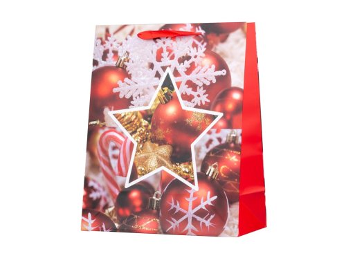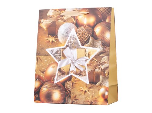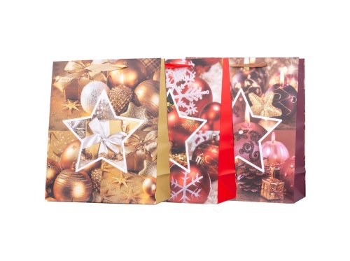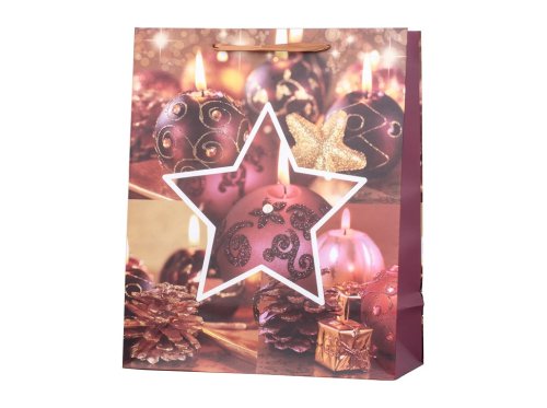 Štýlová darčeková taška s rozmermi 260×320 mm s motívom vianočných ozdôb v kombinácii zlatej, červenej a fialovej farby je ideálna pre elegantné balenie darčekov. Pevný materiál a praktické uši zaisťujú pohodlné prenášanie, zatiaľ čo sviatočný dizajn pridá vášmu darčeku kúzelný vianočný nádych. Skvelá pre rodinu, priateľov aj firemné balenie.