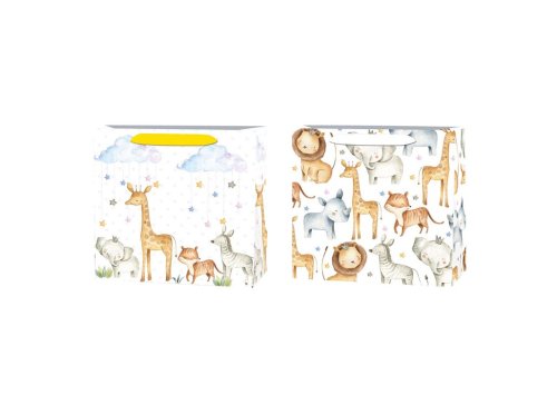 Darčeková taška o rozmere 320×120×260 mm s veselým motívom detských zvieratiek v rôznych farebných variantoch. Jednotlivé tašky sú dodávané v mixe a farby sa môžu líšiť.