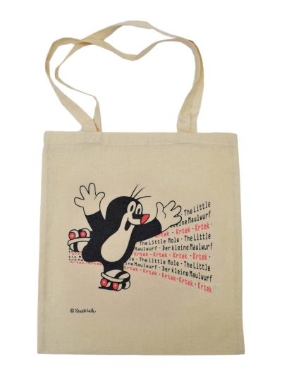Plátená prírodná taška cez rameno s potlačou Krtka. Materiál 100% bavlna. Prateľná. Nie je hračka