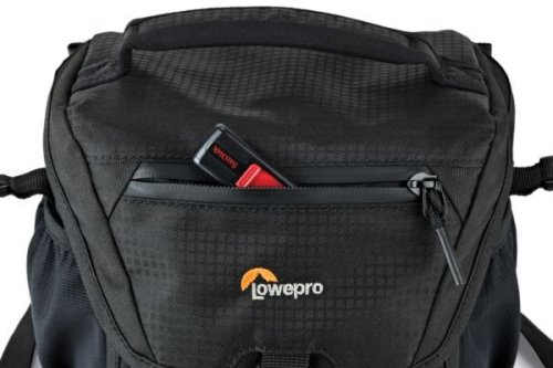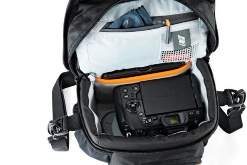 V hlavnej komore je umiestnené samostatné vrecko, do ktorého pohodlne vložíte smartfón alebo tablet. Na vnútornej strane veka hlavnej komory nájdete praktické transparentné vrecko na pamäťové karty a vrecko so zipsom. Predné vrecko na zips je kryté vekom hlavnej komory a má sofistikované vnútorné členenie. Predné vrecko na vonkajšej strane veka hlavnej komory má vodeodolný zips. Dve vonkajšie bočné sieťové vrecká a vrecko na zips na zadnej strane môžete využiť na príslušenstvo a osobné veci.