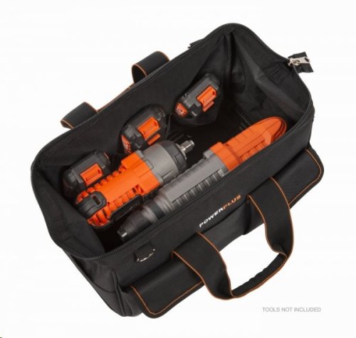 Taška na náradie POWDPBAG01 značky Powerplus je vyrobená z kvalitnej pevnej látky. Špeciálne tvarované vrecká prehľadne roztriedia vaše náradie. Hlavný priestor na zips sa hodí predovšetkým pre menšie aku nástroje, ako sú vŕtačky, skrutkovače či brúsky.