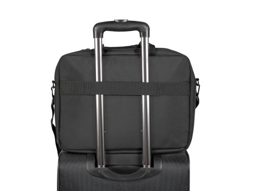 Typ: Taška Špecializácia: notebooky Špeciálna veľkosť: do 15,6 “ Priehradky: 2 Vyhradené vrecká/oddelenie: Príslušenstvo, Dokumenty, Notebook, Tablet, Mobilný telefón Celkový počet vreciek: 3 Počet vnútorných vreciek: 3 Materiál: Polyester 1680D Zámok: na zips Farba: čierna Konštrukcia: Odolná proti striekajúcej vode, Ramenná pás, Systém "Trolley" Ramenný popruh: Áno Rukoväť: Áno Dĺžk: 285 mm Šírka: 90 mm Výška: 390 mm Dĺžka priehradky na notebook: 270 mm Šírka priehradky na notebook: 40 mm Výška priehradky na notebook: 370 mm Hmotnosť: