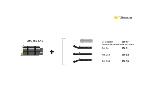 Na klasické zadné nosiče Sport Arsenal alebo predný nosič art.203 Sport Arsenal je možné túto tašku použiť po pridaní adaptéra Art.185 QF. Originálny QuickFix systém prináša jednoduché, rýchle a spoľahlivé uchytenie tašky k nosiču.