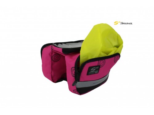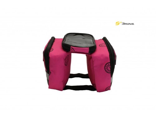 Rámová dvojbraška s vreckom pre smartfón na nevyhnutné drobnosti (mobil, powerbanku, peňaženku, kľúče, sušienku) sa k rámu pripevňuje suchými zipsami. Taška má vrecko pre smartphone a dve oddelené bočné vrecká uzatvárateľné zipsom.