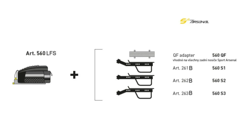 Na klasické zadné nosiče Sport Arsenal alebo predný nosič art.203 Sport Arsenal je možné túto tašku použiť po pridaní adaptéra Art.185 QF. Originálny QuickFix systém prináša jednoduché, rýchle a spoľahlivé uchytenie tašky k nosiču.