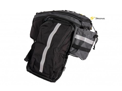 Univerzálna taška na zadný nosič ktorú uplatníte na menšie výlety, na cestu do práce, alebo pre rybárov juniora. Zásadnou výhodou tašky je jej členenie a variabilita objemu. Zo stredne veľkej tašky môžete mať po roztvorení bočných vreciek tašku s objemom až 20 litrov.