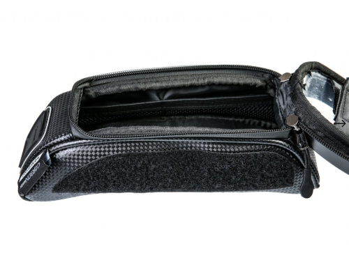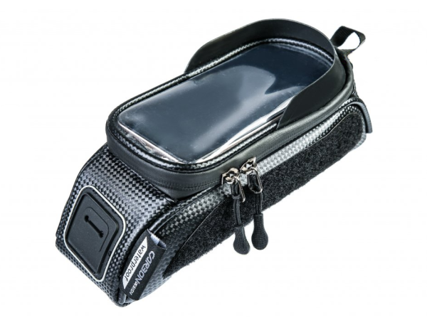 Taška na hornú rámovú rúrku s vreckom pre mobil z moderného materiálu CarbonDesign. Praktická objemná taška na všetky nevyhnutnosti, ktoré treba mať stále na očiach (mobilný telefón, kompaktný fotoaparát, peňaženka, kľúče, sušienka).