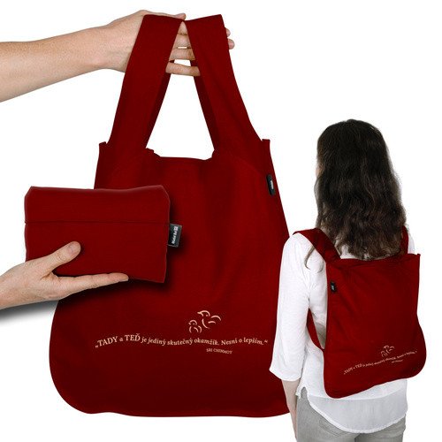 Niekedy batoh, inokedy taška - to je taškobatoh. Je menší ako batoh, takže si ho môžete zbaliť a bude po ruke, až bude treba. A je na Vás, či ho potom ponesiete ako tašku cez rameno, alebo ako batoh. Má široké ramenné popruhy a vrecko, v ktorom je zbalený, sa premení na vnútorné vrecko na drobnosti. A svojim dizajnom – a citátom – môže prinášať inšpiráciu pri každom použití. "Tu a teraz je jediný skutočný okamih. Nesnívaj o lepší m." ; - Sri Chinmoy
