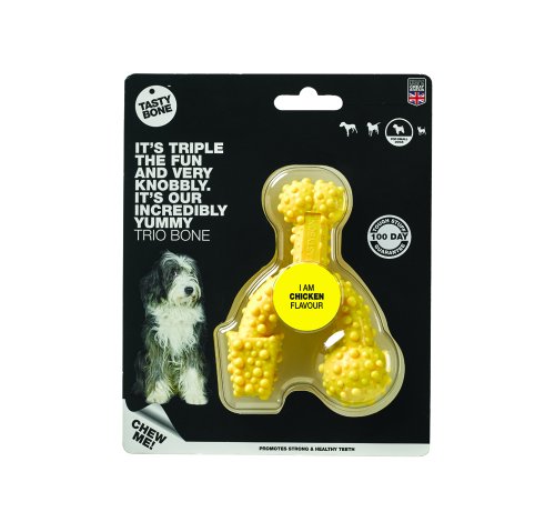 Trojnásobná zábava. Neuveriteľne lahodná trio kocka. Rovnako ako všetky nylonové maškrty TastyBone aj tento bol testovaný na tých najenergickejších maškrtách.