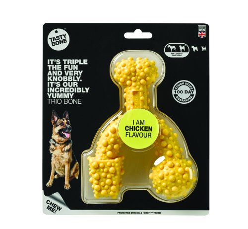 Trojnásobná zábava. Neuveriteľne lahodná trio kocka. Rovnako ako všetky nylonové maškrty TastyBone aj tento bol testovaný na tých najenergickejších maškrtách.