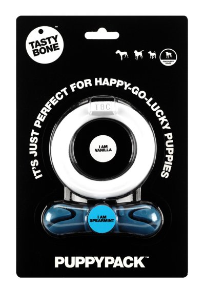 Ideálne riešenie pre šťastné šteniatka! Dental balíček obsahuje dva lahodné produkty špeciálne navrhnuté na zmiernenie bolesti pri prerezávaní zúbkov a zároveň uspokojuje potreby šteniatok. Gumový krúžok má vanilkovú príchuť a nylonová kocka je super pevná s jedinečnými masážnymi drážkami, ktoré masírujú ďasná a znižujú hromadenie povlaku a zubného kameňa. Balenie je určené pre šteňatá a extra malých psíkov.