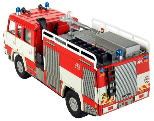 Model hasičského záchranného vozidla je vyrobený z potlačeného plechu. Vodná tryska na streche je otočná.
