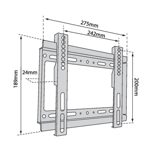 *Použitie: TV *Typ držiaka: na stenu *Maximálna veľkosť obrazovky: 42" *VESA: *75 x 75 *100 x 100 *200 x 100 *200 x 200 *Maximálna hmotnosť: 40 kg *Rohový držiak: nie *Materiál: kov *Farba: čierna