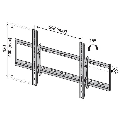 *Použitie: TV *Typ držiaka: na stenu *Maximálna veľkosť obrazovky: 80" *VESA: *200 x 200 *400 x 200 *400 x 400 *600 x 400 *Maximálna hmotnosť: 35 kg *Vertikálna polohovateľnosť: 20° *Rohový držiak: nie *Materiál: kov *Farba: čierna