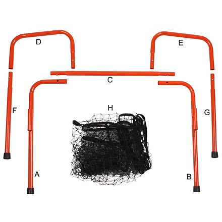 Pokiaľ sa s deťmi alebo priateľmi radi bavíte na záhrade pri futbale, potom bude pre vás malá skladacia futbalová bránka Merco Team 90 tou pravou voľbou. Bránka s rozmermi 90 x 60 x 40 cm (šírka x výška x hĺbka) je vyrobená z konštrukcie z práškovo lakovanej ocele, priemer trubiek je 26 mm, tyčky bránky sú opatrené plastovými koncovkami. Zložíte ju jednoduchým zasunutím jednotlivých rúrkových dielov do seba. Následne na konštrukciu prichytíte pomocou plastových háčikov polyetylénovú sieť a napnete ju kovovými kolíkmi, ktoré zapichnete do zeme. Výhodou je nízka hmotnosť bránky - iba 2,8 kg, vďaka ktorej sa s bránkou veľmi dobre manipuluje. Užite si radosť z hry so skladacou bránkou Merco Team 90. - Rozmery zloženej bránky (šírka x výška x hĺbka): 90 x 60 x 40 cm - Priemer trubiek konštrukcie: 26 mm - Hmotnosť bránky: 2,8 kg - Rozmer balenia (šírka x výška x hĺbka): 70 x 27 x 6 cm - Materiál: práškovo lakovaná oceľ, polyetylén, plast Obsah balenia: - 7 x oceľový rúrkový diel konštrukcie - 1 x sieť - 20 x plastový háčik na prichytenie siete - 6 x napínací oceľový kolík Montážny postup: 1.Medzi dve rúrky v tvare L (diely A, B) vložte rovnú rúrku (diel C), tým vytvoríte základnú konštrukciu - tyčky a brvno. Vždy zacvaknite kovový kolík do protiľahlého otvoru. 2.Do úchytov na tyčkách nasuňte bočné diely v tvare U (D,E). 3.Do bočných dielov v tvare U nasuňte zadné tyčky (diely F,G). 4.Na konštrukciu nasaďte sieť ak brvnu a tyčkám ju prichyťte plastovými háčikmi. 5.Napnite sieť oceľovými kolíkmi, ktoré zapichnete do zeme. Toto je dôležité aj pre celkové spevnenie konštrukcie bránky. Upozornenie: bez napnutia siete kolíky zapichnutými v zemi nebude bránka dostatočne stabilná.