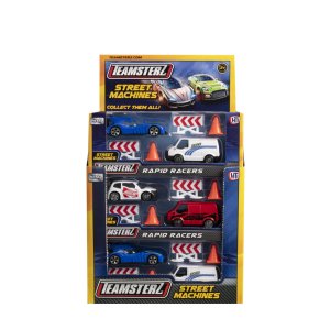 Pripravte sa na preteky! Táto herná súprava obsahuje vysoko detailné závodné auto a závodnú podpornú dodávku s cestným príslušenstvom. Je k dispozícii v sortimente dvoch farieb a štýlov na výber a zahŕňa 2 kužele a 2 zábrany. Perfektný darček pre každého malého nadšeného vodiča, ktorý ponúka hodiny nápaditej zábavy! Tlakovo liate vozidlá Teamsterz Street Machines majú mierku približne 3 palce a vyznačujú sa vysoko kvalitným tlakovo liatym skeletom karosérie a nezávislými voľne pohyblivými kolesami. Vhodné pre vek 3+.