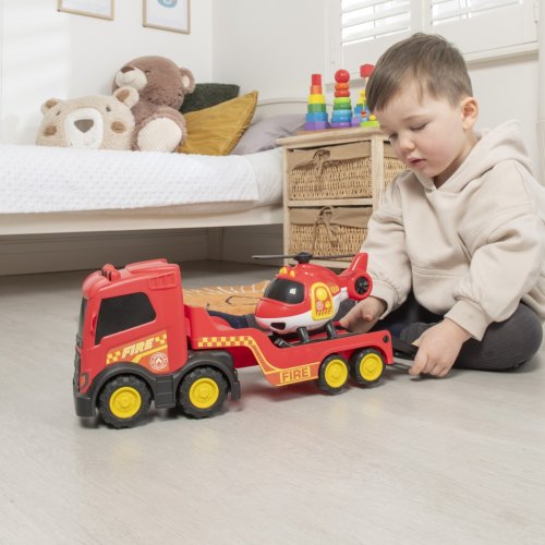 Tento hasičský nákladný automobil s helikoptérou je skvelým darčekom pre malé deti od 18 mesiacov! Vrtuľník má ručne otočnú vrtuľu, ktorá pridáva na zábavnosti pri hre, a transporter je vybavený praktickou nakladacou rampou pre ľahký transport.