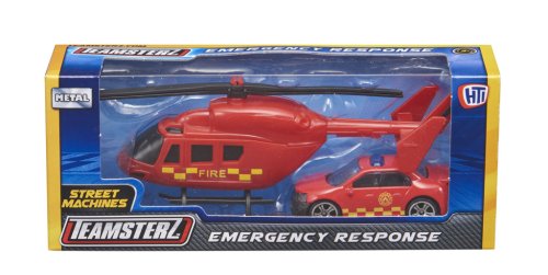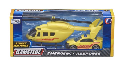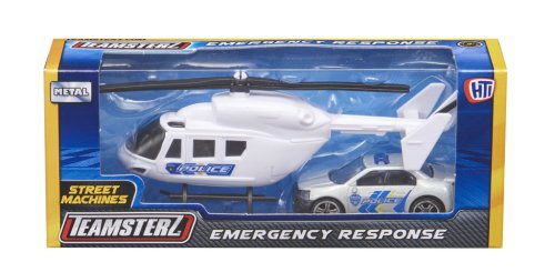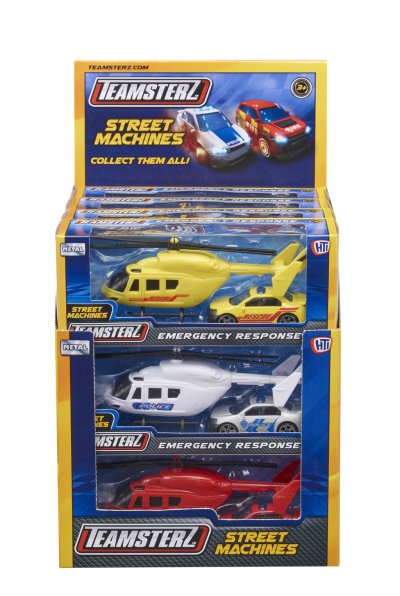 Sada obsahuje vrtuľník s ručne otáčajúcimi sa listami vrtule a zásahové auto. K dispozícii v sortimente 3 motívov; polícia, hasiči a záchranári. Perfektný darček pre každého malého nadšeného vodiča, ktorý ponúka hodiny nápaditej zábavy! Napomáha rozvoju sociálnych zručností, predstavivosti a jemnej motoriky vašich najmenších, pretože majú ideálnu veľkosť na hranie. Tlakovo liate vozidlá majú mierku približne 3 palce a vyznačujú sa vysoko kvalitným tlakovo liatym skeletom karosérie a nezávislými voľne pohyblivými kolesami. Vhodné pre vek 3+.