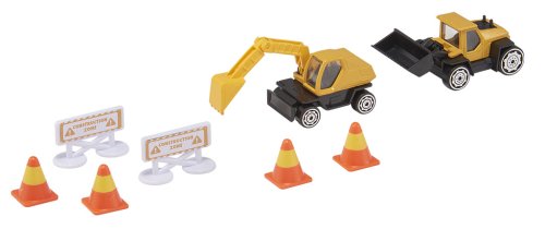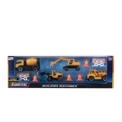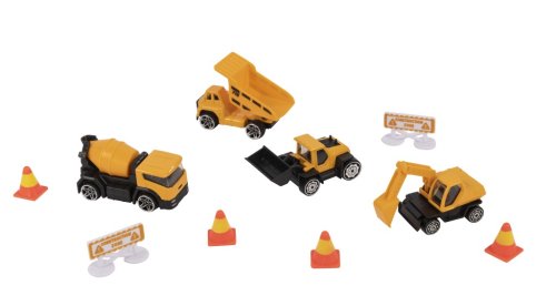 Teamsterz konštrukčný mini set obsahujúci rôzne stavebné stroje, varovné cedule a kužele.