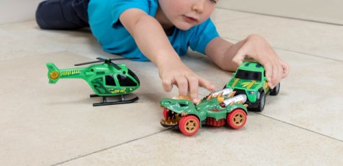 Pre skutočne akčnú hru stačí zatlačiť pozdĺž voľne sa pohybujúceho dinosaura, aby sa spustili jeho cvakacie čeľuste, čo zaručene nadchne každého malého dobrodruha.