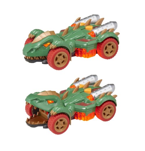 Táto monštruózna hračka prináša veľa zábavy! Voľne sa pohybujúce kolieska spúšťajú zvuk cvakania čeľustí, zatiaľ čo monštier zvuky a zvuky motora dodávajú hre poriadnu dávku vzrušenia. Navyše sa oči rozsvecujú a blikajú na červeno, čo dáva hračke ešte viac tajomného a desivého nádychu.