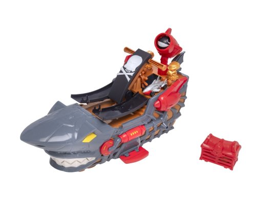 Zíďte s autíčkom po rampe a zatlačte loď vpred, aby ste vypustili autíčko z čeľustí. Loď je vybavená delom, ktoré môžete nabiť delovou guľou alebo hlavnou a následne zatiahnuť za páčku, aby ste vystrelili - skvelá zábava pre všetkých malých pirátov!