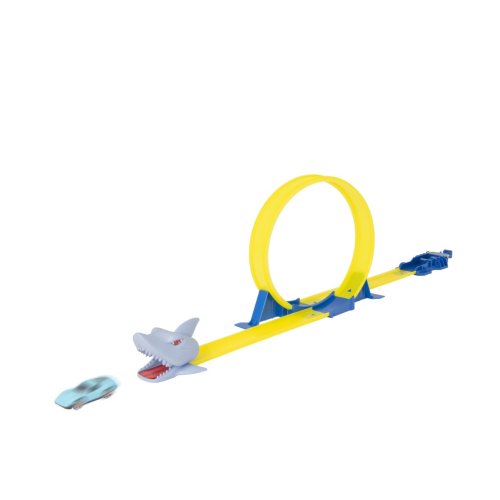 Priprav sa na akčnú jazdu so Žraločou dráhou Teamsterz! Táto napínavá sada obsahuje slučku s elastickým vystreľovačom a žraločiu koncovku, ktorá preverí tvoje vodičské schopnosti. Spusť autíčko, presvišti slučkou a unikni nebezpečnej papuli žraloka!