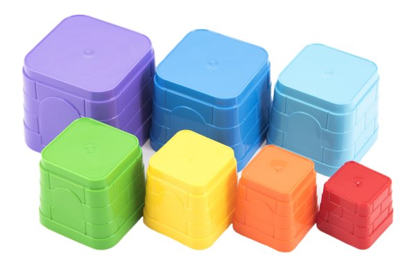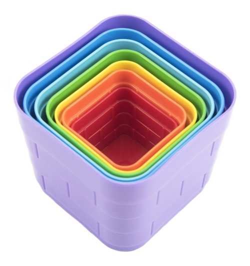 Milí stavitelia komínov z kociek čaká vás dôležitá úloha: postaviť vysoký komín z kociek. Kubus obsahuje sedem hranatých dielov rôznych farieb, ktoré do seba zapadajú. Skladačku si deti môžu vziať aj na piesok alebo do vody. Obsah balenia: 7 plastových kociek. Veľkosť základne najväčšej kocky 9 x 9 cm. Celková výška po zostavení: 38 cm. Vhodné pre deti od 12 mesiacov.
