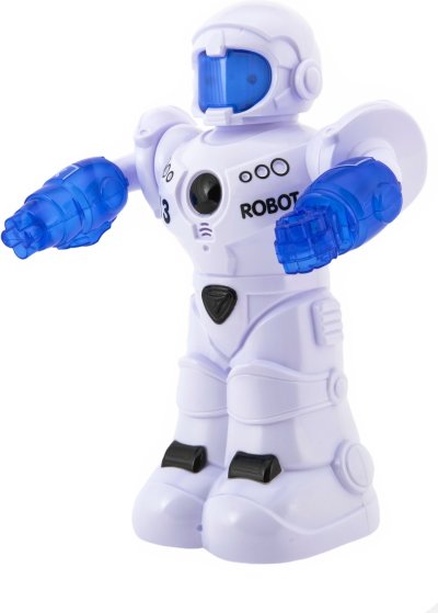 360° otáčanie pri náraze — po kontakte s prekážkou sa automaticky otočí a pokračuje v jazde. Pohyblivé ruky - realistický pohyb poskytuje viac možností pre hru a interakciu. Svetelné a zvukové efekty – robot svieti, vydáva zvuky a hovorí anglicky (hlášky podporujú kontakt detí s cudzím jazykom). Na prevádzku sú potrebné 3ks batérie typu AA (nie sú súčasťou balenia). Výška robota je 26 cm.