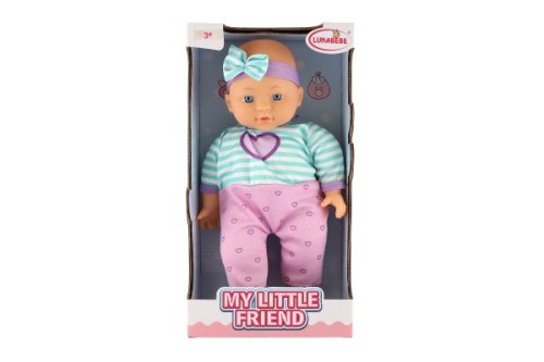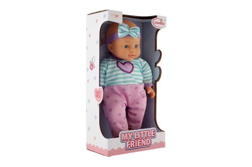 Roztomilá bábika s mäkkým telíčkom v krásnom oblečku aj s čelenkou. Toto bábätko urobí určite radosť každému dievčatku a stane sa tak jej nepostrádateľnou súčasťou. Veľkosť bábiky: 30 cm Rozmer balenia: 17 x 33 x 10 cm