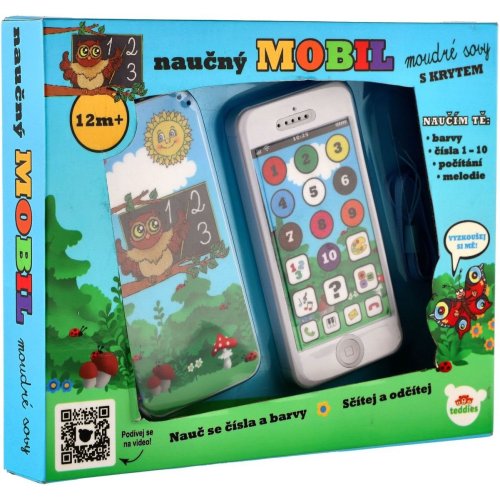 Dotykový mobil, s ktorým sa deti naučia farby, čísla, sčítanie a odčítanie Ďalej môžu počúvať melódie známych českých pesničiek a numerickú klávesnicu použiť ako piánko. motoriku, rozvíja zrak a sluch aktívnym zapojením do hry. Súčasťou je atraktívny kryt s motívom múdre sovy. Batérie 3x AG13 sú súčasťou výrobku.