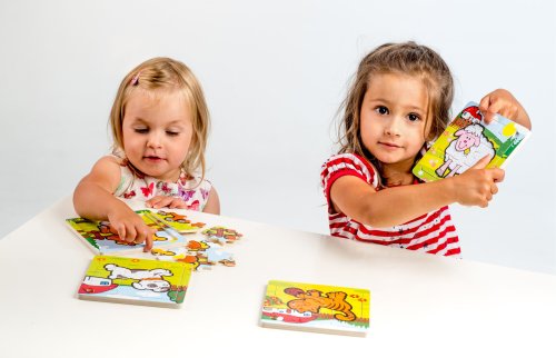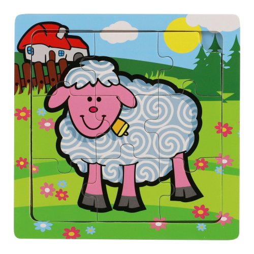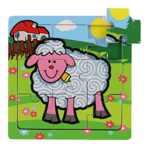 Detské puzzle z dreva. Dieliky sú umiestnené na drevenej doske s vyfrézovaným okrajom na uľahčenie skladania. Skladanie puzzle rozvíja fantáziu a podporuje rozvoj motoriky. Rozmer zloženého puzzle cca 12,5 x 12,5 cm
