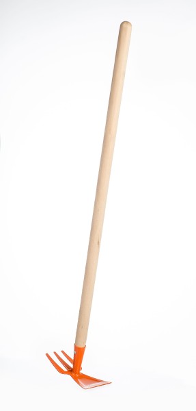 Kovová motyka oranžová obojstranná s drevenou násadou pre malých záhradníkov. Dĺžka 80 cm. Vhodné pre deti od 3 rokov.