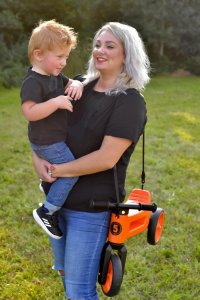 Odrážadlo FUNNY WHEELS Rider SuperSport 2 v 1 – hravo zmeníte trojkolku na dvojkolesové balančné odrážadlo. Dieťa nie je nútené si zvykať na novú hračku, stále riadi „svoj stroj“, takže zvládne zmenu a naučí sa rovnováhe bez strachu av pohode. Výškovo nastaviteľné – 2 polohy nastavenia na oboch nápravách. Pre menšie aj väčšie deti. Dizajnové kolesá s mäkkými PNEUMATIKAMI, ktoré zaistia bezhlučnú jazdu, v interiéri nezanechávajú na podlahe žiadne stopy a nemožno ich pichnúť (sú bez vzduchu). Popruh na PRENÁŠANIE odrážadla. Jednoducho si odrážadlo zavesíte na rameno, a pritom máte obe ruky stále voľné. Praktické, kedykoľvek potrebujete odrážadlo premiestniť bez malého jazdca. Aretácia riadidiel – vidlica má obmedzený rozsah otáčania, riadidlá sa nemôžu pretočiť. Aretácia zabraňuje poraneniu bruška dieťaťa. Riadidlá sú opatrené farebnými, supermäkkými rukoväťami, ktoré sú na koncoch rozšírené a chránia tak ruky detí pred poranením. Vyvinuté po konzultácii s ortopédmi. Vyrobené v ČR z odolného a nezávadného plastu so zahladenými spojmi. Certifikované v SR. Odporúčaný vek: od 18 mesiacov (alebo od 80 cm výšky) Nosnosť: 25 kg Výška sedla: 28/30 cm Šírka riadidiel: 30 cm Rozstup zadných kolies: 20 cm Váha odrážadla: 1,9 kg Rozmery krabice: 56 x 27 x 14,5