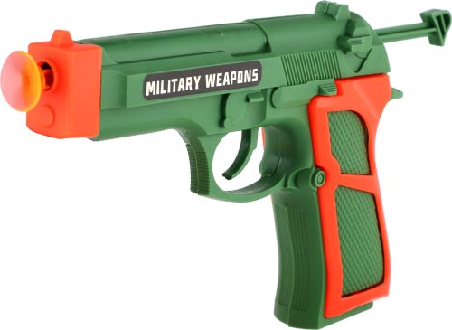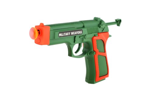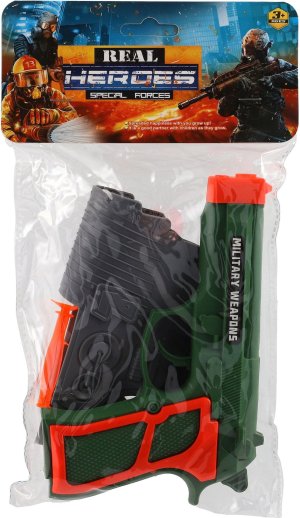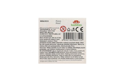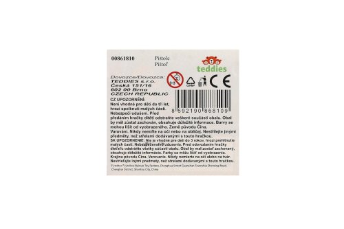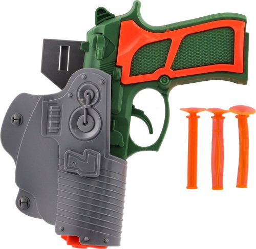 Pištoľka poteší predovšetkým chlapcov, ktorí sa chcú hrať na skutočných policajtov. Teraz už pred nimi nikto neutečie. Deťom sa pri hre s pištoľkou a nábojmi nemôže nič stať, pretože náboje sú opatrené prísavkami. Deti môžu strieľať do terča, alebo aj na sklo. Balenie obsahuje 3ks plastových nábojov s prísavkou. Rozmery balenia 17 x 29 x 6 cm. Vhodné pre deti od 3 rokov.