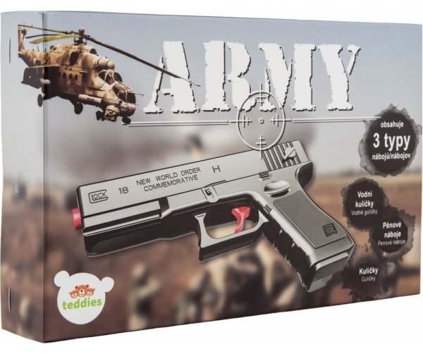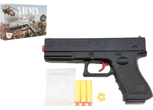 Hravá zábava predovšetkým pre chlapcov! Pištoľ na penové náboje, vodné aj gumové guličky zabaví každého pištoľníka. Vlož guličky, nabi, zamier a strieľaj. Veľkosť guličiek je 6 mm. Rozmer pištole: 20 cm Rozmer krabičky: 23 x 15 x 4 cm. Vhodné pre deti od 8 rokov.