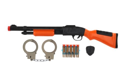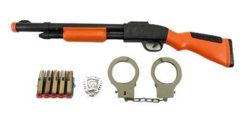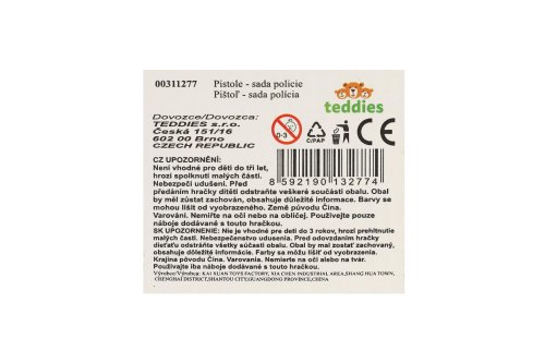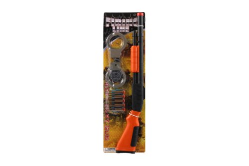 Zábava pre všetkých chlapcov, ktorí túžia stať sa policajtom! Balenie obsahuje pištoľ, 5 nábojov s prísavkou, putá a policajný odznak. Vhodné od 3 rokov.