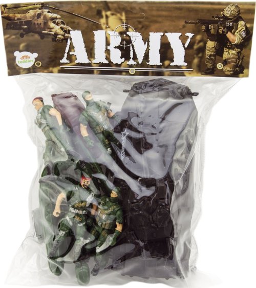 Sada obsahuje prepracované postavičky vojakov so zbraňami a doplnkami. Určené pre malých chlapcov, ktorí sa radi hrajú na vojakov.