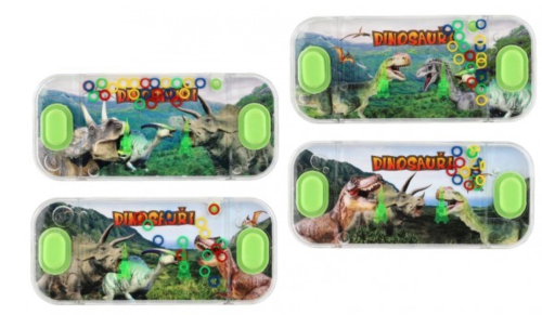 Tradičná detská hra, ktorá neomrzí. Princíp hry je jednoduchý. Majú za úlohu dostať na špicaté stožiarky krúžky vznášajúce sa vo vode a to jednoduchým stlačením tlačidla. Táto hra podporuje sústredenie a trpezlivosť. Vybrať si môžete z niekoľkých motívov s dinosaurom. Rozmer hry: 15,5 x 7 cm Vhodné pre deti od 3 rokov
