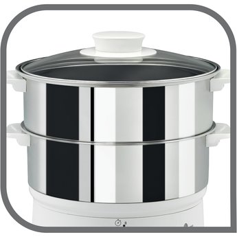 Parný hrniec nesmie chýbať v žiadnej domácej kuchyni. Spoločnosť Tefal patrí medzi popredných výrobcov kuchynských spotrebičov, voľbou parného hrnca od tejto značky preto vsádzate na osvedčenú klasiku. Zariadenie disponuje veľkým objemom 6 litrov, hodí sa preto aj do väčších rodín, kde je potrebné variť veľké porcie, aby si každý mohol naplno pochutnať. Aby ste nemuseli hrniec neustále strážiť, je možné aktivovať časovač. Pootočením ovládacieho gombíka máte možnosť nastaviť si dobu až na 60 minút, po uplynutí ktorej sa prístroj sám automaticky vypne.