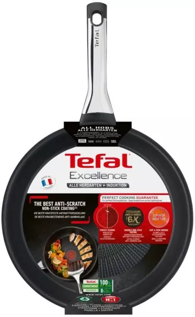 Nezameniteľný prskavý zvuk kuracieho mäsa vloženého do panvice, rachotenie riadu, rýchly pohyb varešky presne v správnej chvíli. Extrémne varenie si žiada panvicu, ktorá ustojí extrémne podmienky. Panvica Tefal Excellence spája úplne nový povrch TITANIUM 6X ANTI-SCRATCH s vynikajúcou nepriľnavosťou a odolnosťou, ktorá zvládne aj kovové náčinie, a obzvlášť silným dnom THERMO-FUSION™+, ktoré povýšia vaše výsledky v kuchyni na novú úroveň.