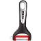Škrabka v tvare Y S flexibilnou otočnou čepeľou Ochranný kryt umožňuje bezpečné a jednoduché uskladnenie Vhodné do umývačky pre ľahké čistenie V čiernej a červenej farbe