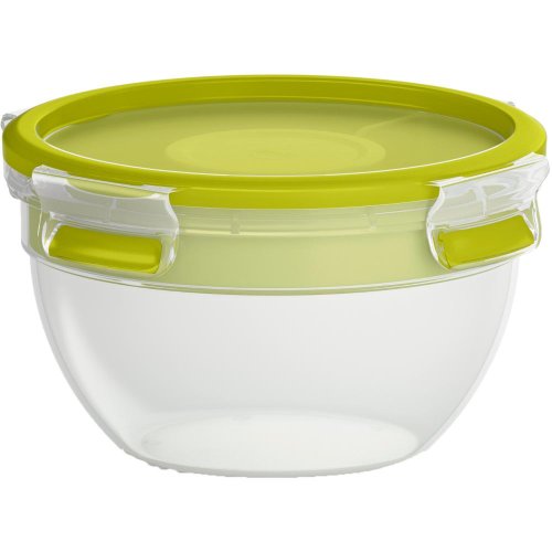Kruhová dóza s objemom 1,0 l Systém uzatvárania so 4 klipmi po stranách Bezpečné pre použitie v mikrovlnnej rúre, mrazničke a umývačke V zelenej farbe