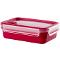 Obdĺžniková dóza s objemom 0,8 l Systém uzatvárania so 4 klipmi po stranách Funkcia ohrievania jedla v mikrovlnnej rúre pomocou ventilu Pevne vlisované tesnenie FreshSeal Bezpečné pre použitie v mikrovlnnej rúre, mrazničke a umývačke V červenej farbe